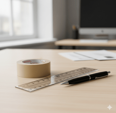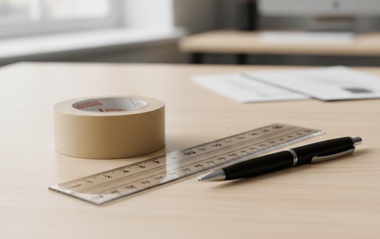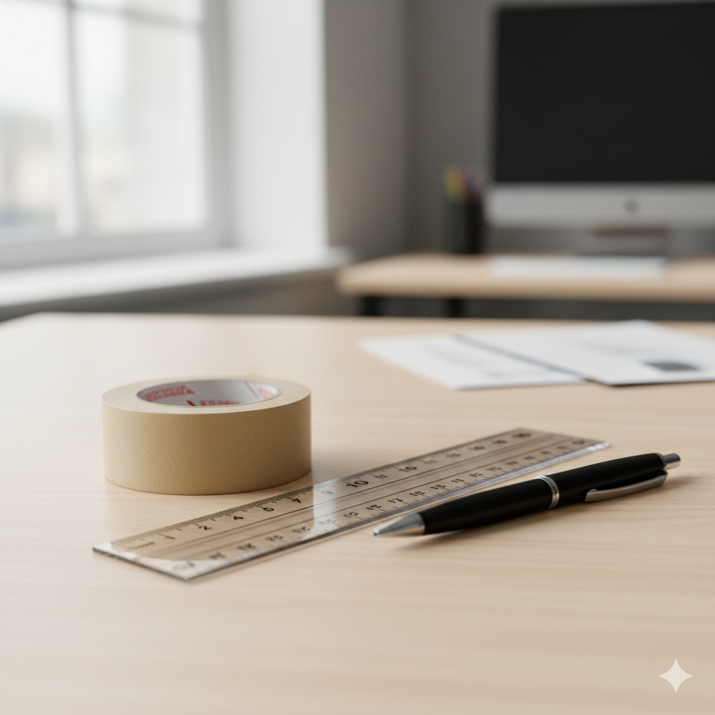 Você vai precisar de uma fita crepe, uma régua ou fita métrica e uma caneta.