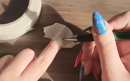 Passe a caneta bem nos cantinhos da sua unha natural, fazendo a marcação na fita