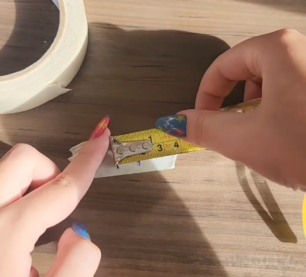 Cole a fita crepe bem rente à sua unha natural. Para uma melhor medida, aperte os cantinhos da unha, para garantir que está bem encaixada.