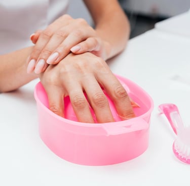Balance delicadamente as unhas para que a água morna entre nos cantos e a cola comece a ceder