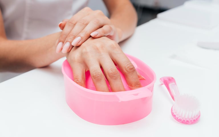 Coloque as mãos em uma bacia com água morna, sabão e óleo por 10 minutos.